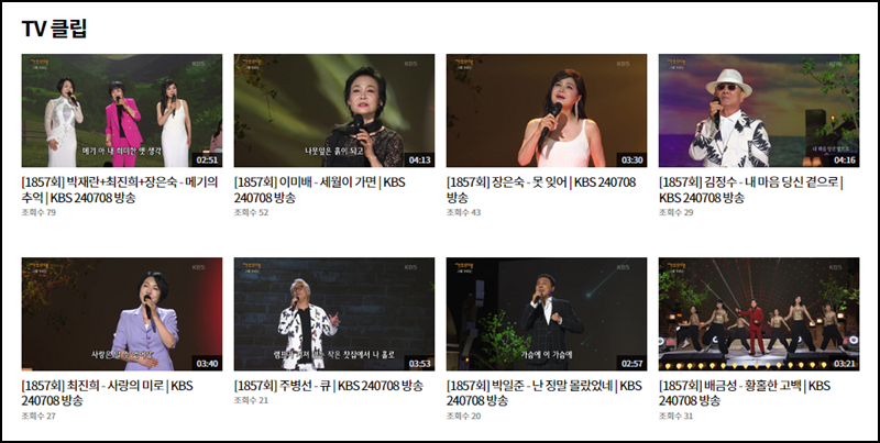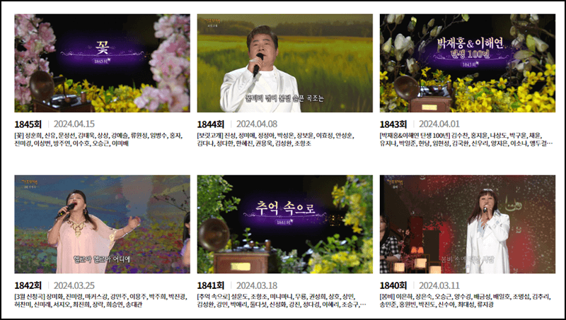 가요무대 애청자시라면 시간 나실 때 지난 방송들도 한 번씩 보신다면 더 큰 감동을 계속 느끼실 수 있을 거예요.