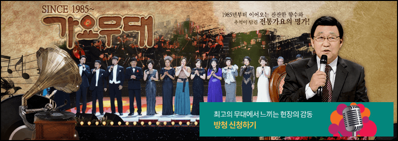 월요일 밤 10시를 책임지는 KBS1 가요무대! 잔잔하면서도 즐거운 음악들로 인해 향수와 추억의 세계로 떠나게 되는데요. 매번 시청하시면서 직접 저 현장에서 생생한 감동을 느끼고 싶어 하시는 분들이 많으실 거예요. 지금 바로 가요무대 방청신청을 하실 수 있도록 바로 안내해드리겠습니다.