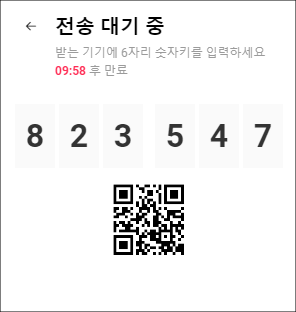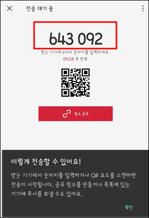 더보기 버튼을 누르면 다양한 앱 목록이 펼쳐지는데, 여기서 센드애니웨어 프로그램을 찾아 클릭해 주세요. '센드애니웨어' 버튼을 선택하면 6자리 숫자가 표시됩니다. 이제 PC로 돌아가서에 가서 센드애니웨어를 실행해 주시고, 이 숫자를 입력해 주면 됩니다.