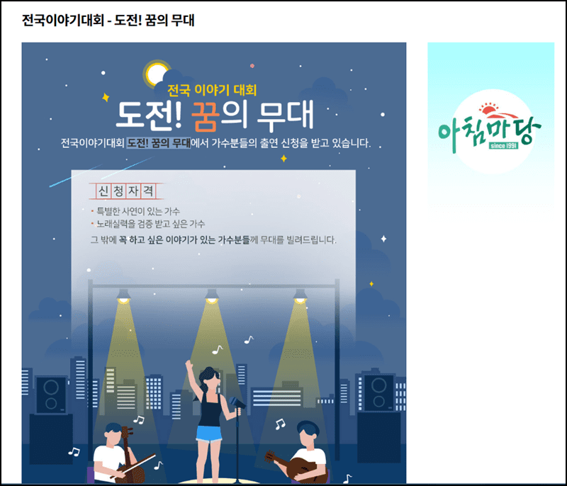 도전꿈의 무대 페이지에서 아래로 쭉 내리시면 신청게시판이 나옵니다.