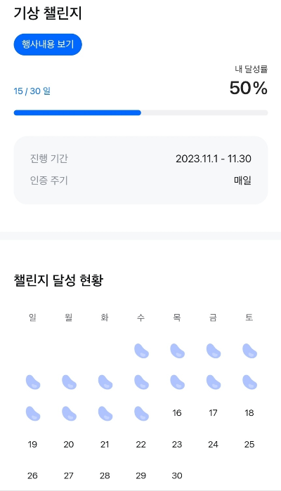 안빼먹고 열심히 할 때 최대 8000원 이상 가능한 것 같습니다. 저도 모든 미션을 다 해보진 못하고 있는데, 기상미션, 출석미션, 걷기미션은 가끔해서 매달 3-4000원을 가져가고 있습니다. 덕분에 주말에도 늦잠자지않고 일찍 일어나고 있습니다.