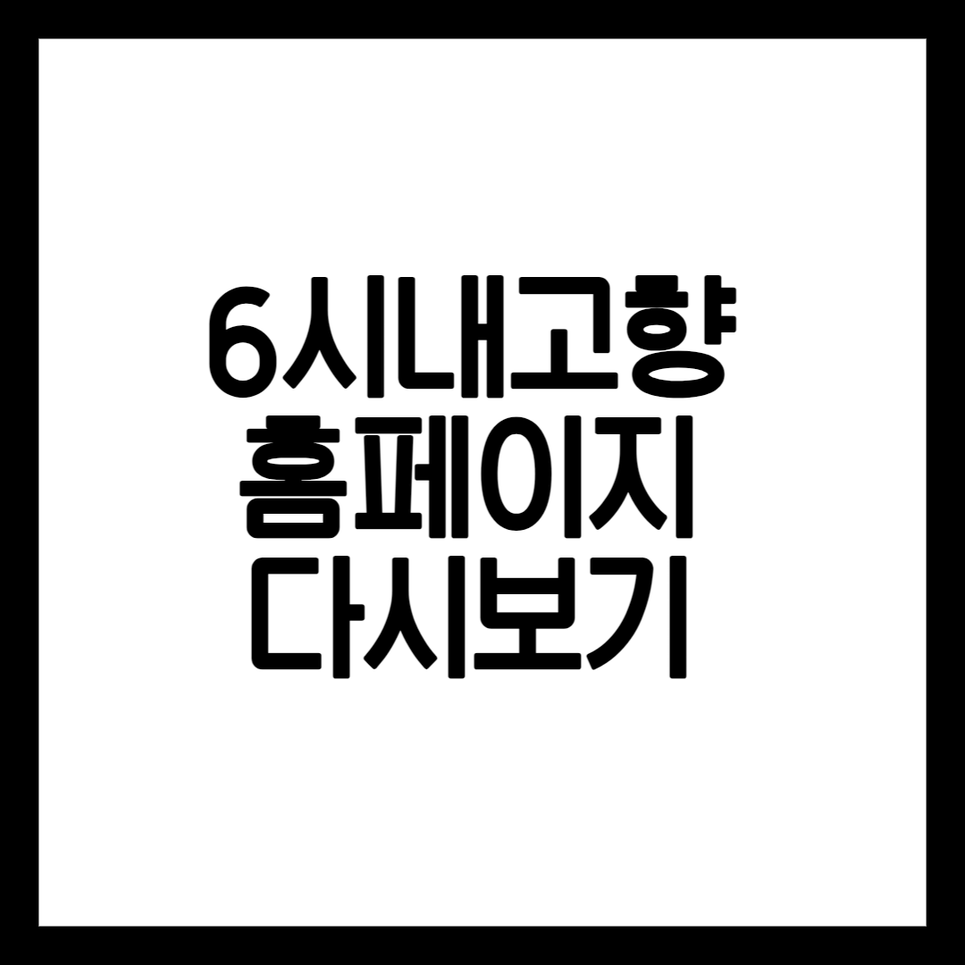 6시내 고향 프로그램을 항상 큰 감동을 받고 계시죠? 소중한 고향을 기리고 다시 찾아가는 고향 프로그램은 사람들에게 감동과 위로를 전달하는 훌륭한 프로그램입니다. 오늘의 6시내고향을 시청하신 후 6시내고향 홈페이지로 바로 가실 수 있도록 지금 바로 안내해 드리겠습니다.